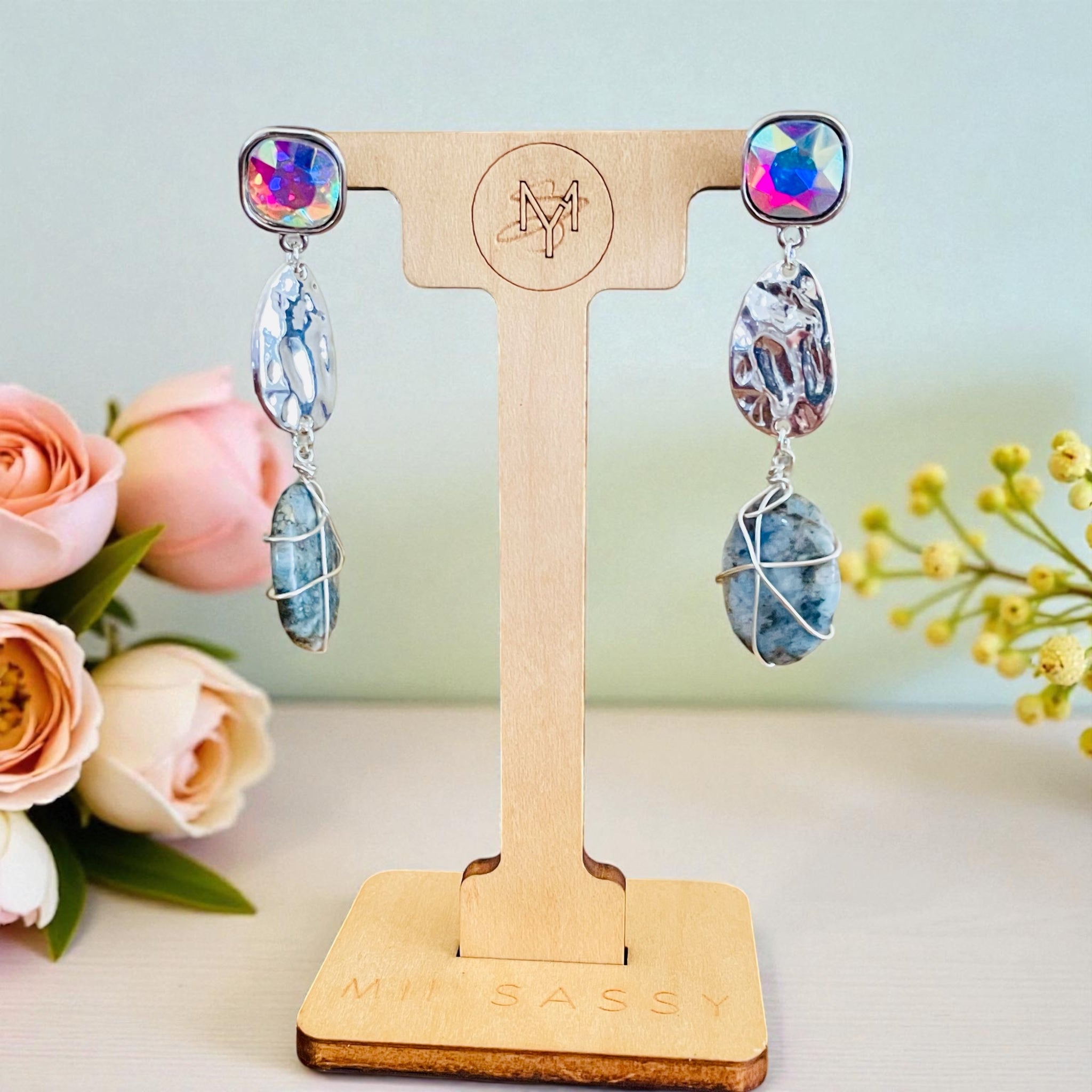 Bring color and artistry to your look with these **3" Long Silver Multicolored Wire Wrapped Beaded Drop Earrings**. Each pair is **handmade and truly one of a kind**, featuring a stunning mix of vibrant beads carefully wire-wrapped with silver tone wire. The result is a dazzling statement piece that blends elegance, creativity, and individuality.