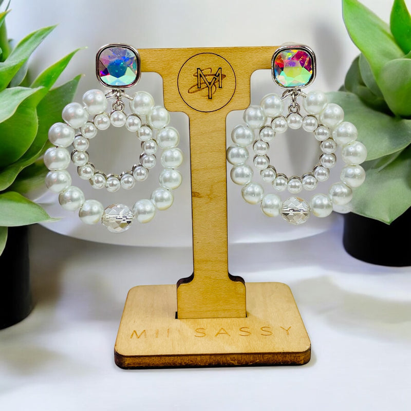 GISELA- White Pearl and Silver Beaded Drop Earrings